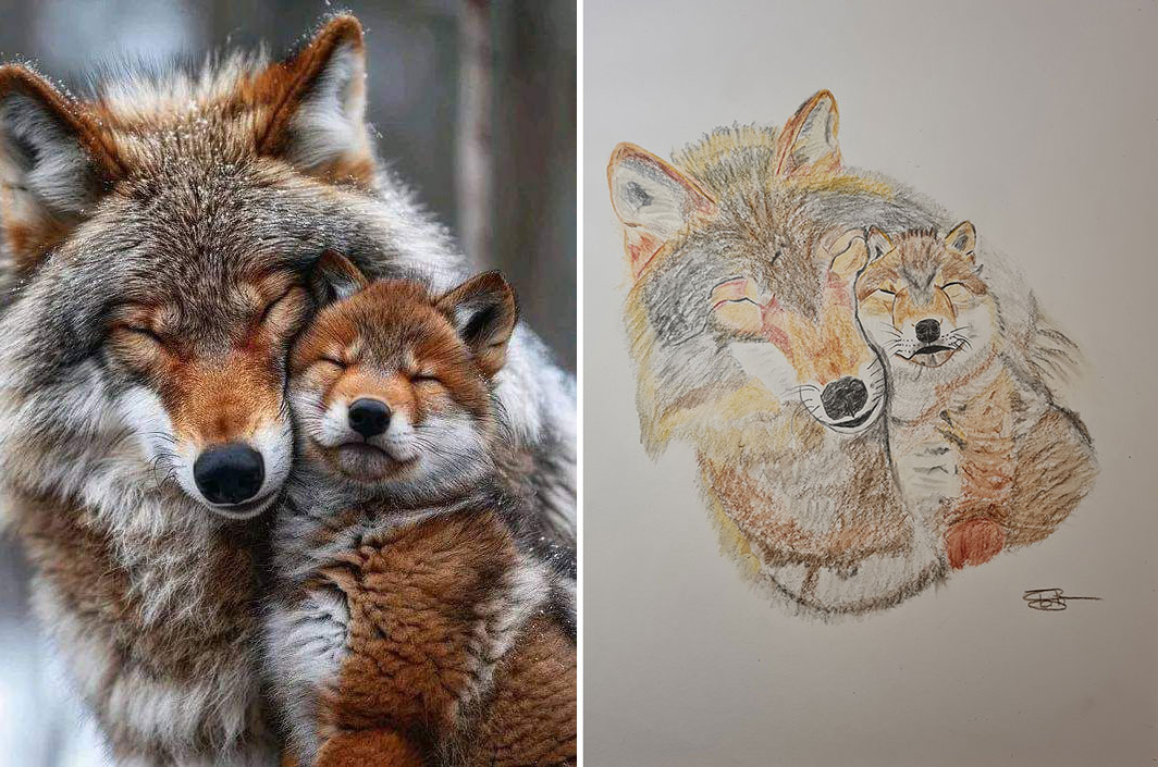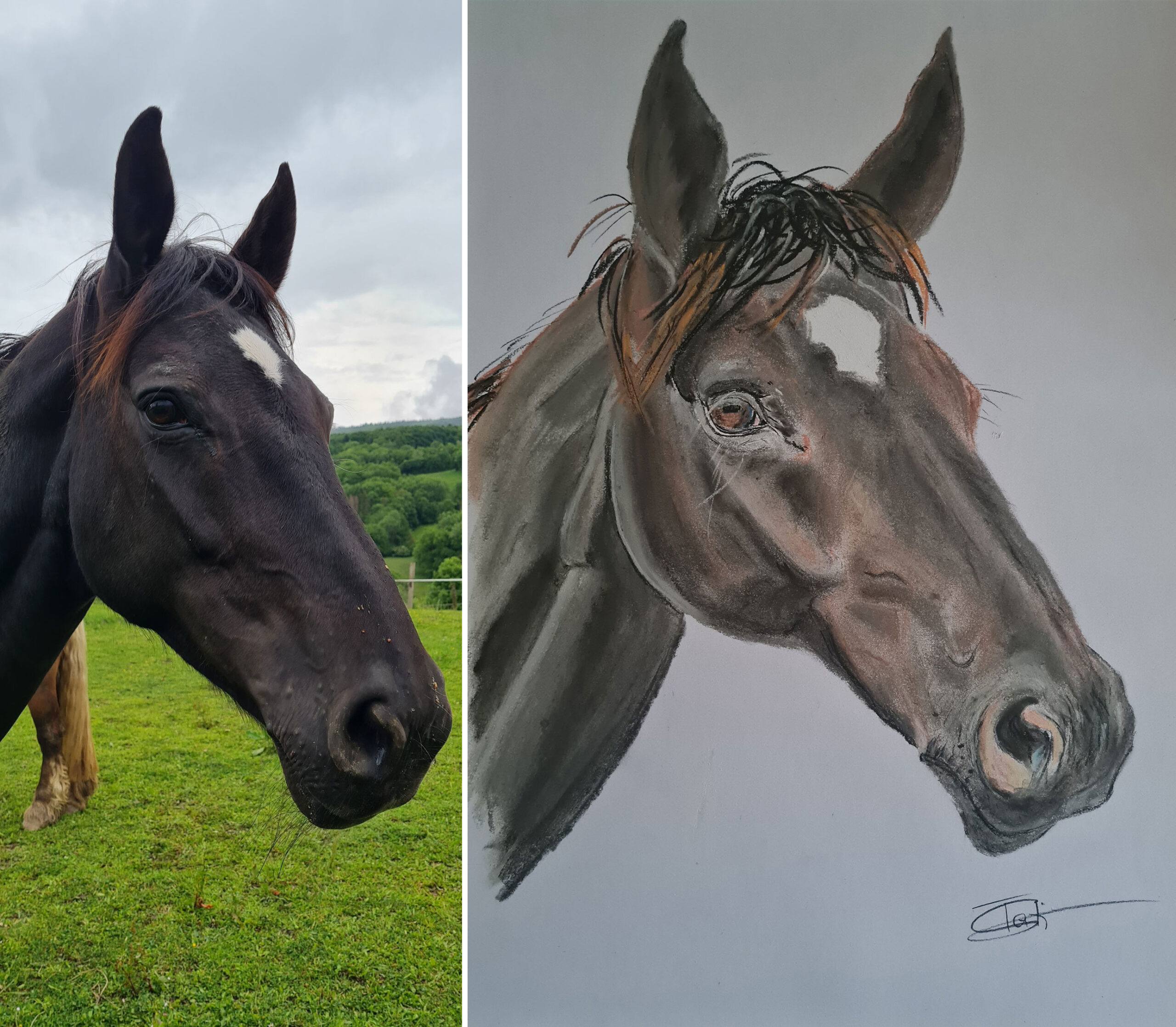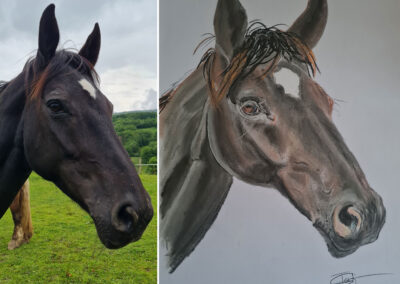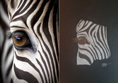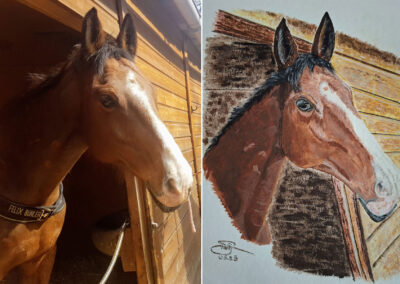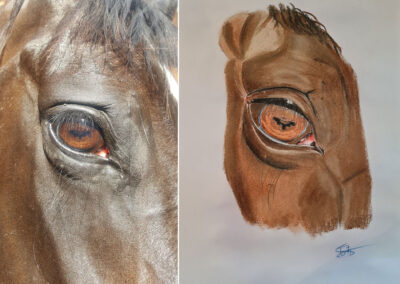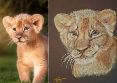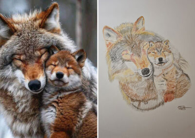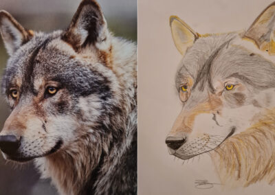 Je travaille avec diverses techniques — crayon gris, crayon de couleur, crayon aquarellable, pastel et acrylique — chacune offrant une palette de nuances et de textures qui permet de révéler la personnalité de chaque animal. Que ce soit la douceur d’un regard, le mouvement gracieux d’une posture ou les détails subtils de la fourrure et des plumes, chaque dessin est une invitation à observer et ressentir le monde animal.